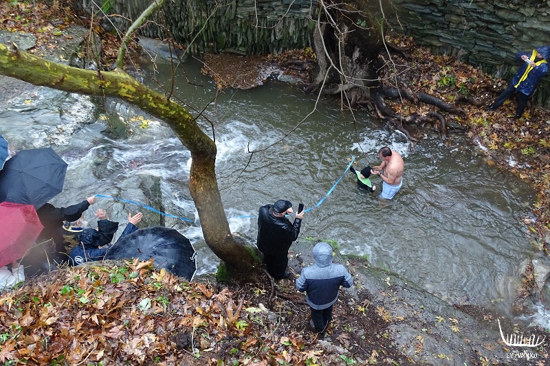 Το ποτάμι πέρσι χρειάστηκε να το διαμορφώσουν κάπως. Εφέτος με το νερό που είχε απλώς ρίξανε το σταυρό και ο Παναγιώτης περπάτησε μέσα στο νερό που έτρεχε κρατώντας τον γιό του από το χέρι!!!