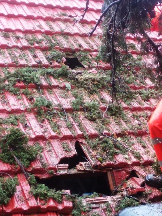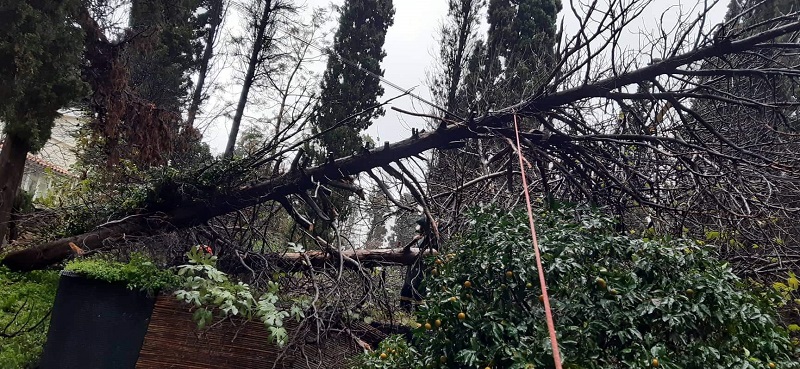 Στην Παλαιόπολη ένα δέντρο έπεσε πάνω σε ένα σπίτι και η πυροσβεστική βρέθηκε στην πρώτη γραμμή να το κόψει και να περισώσει ότι μπορούσε μέσα στην καταιγίδα.