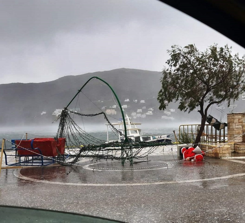 Στο Γαύριο το χριστουγεννιάτικο δέντρο, ο Άγιος Βασίλης και ένα φανοστάτης έγιναν ένα κουβάρι από τον αέρα των 11 μποφόρ!!!