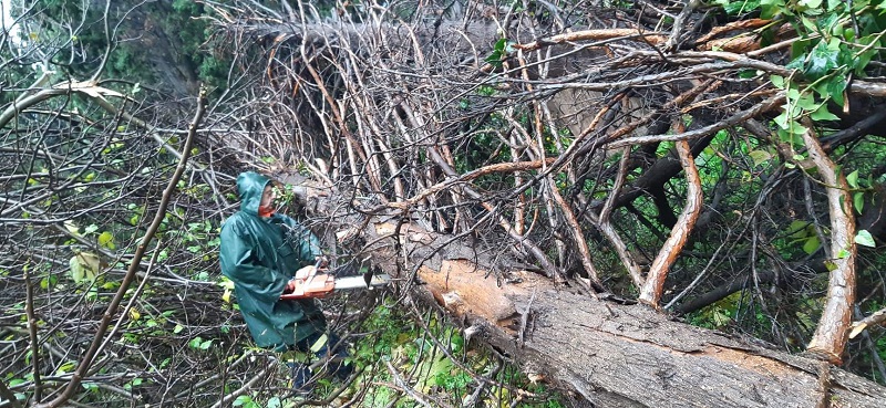 Στο κτήμα Πολέμη στη Μεσαριά οι εθελοντές - που δούλευαν σε 24ώρη βάση - πήγαν και έκοψαν 5 κυπαρίσσια που ήρθαν κάτω και μπορούσαν να προκαλέσουν περισσότερα προβλήματα.