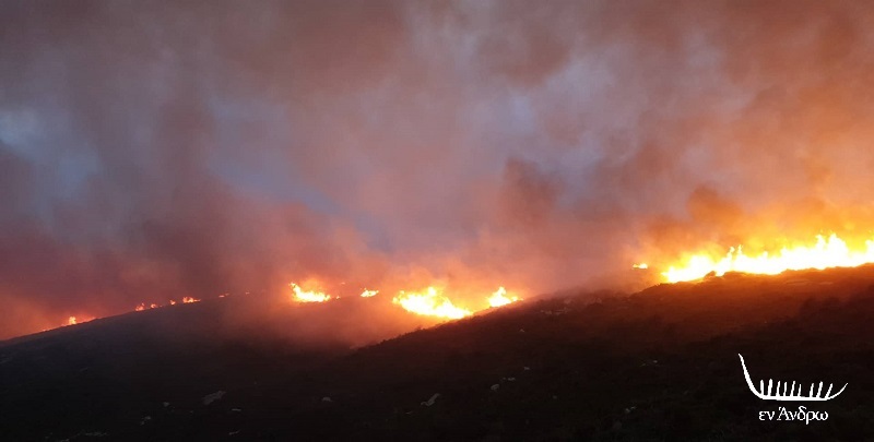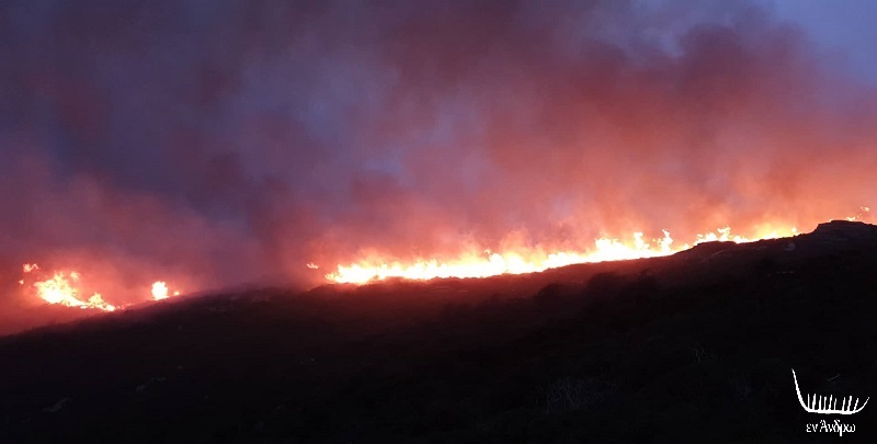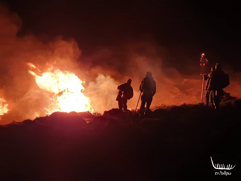 Η μεγάλη φωτιά τέθηκε υπό έλεγχο γύρω στις 21:30 από την πυροσβεστική και τους Εθελοντές