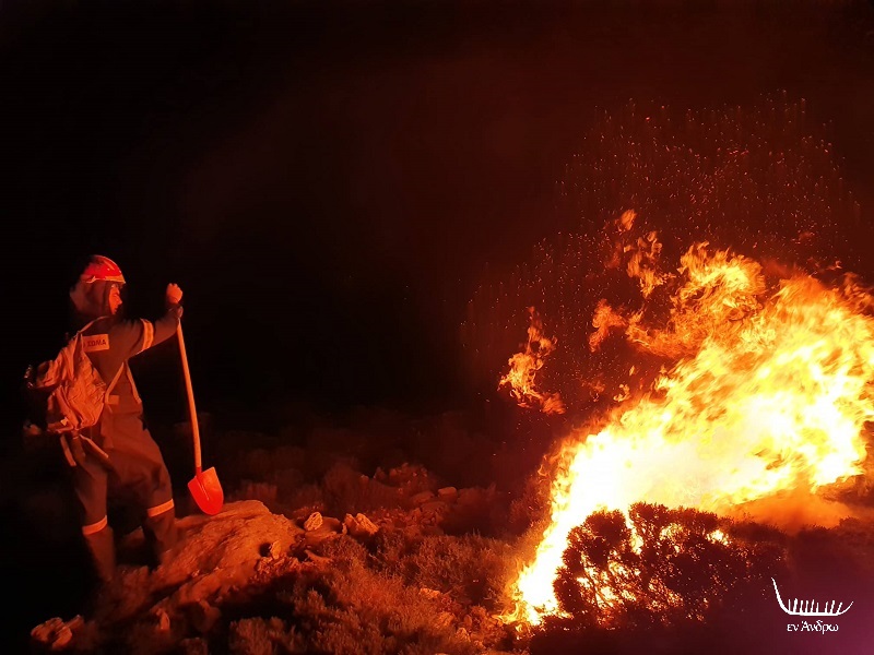 ΣΗΜΕΙΩΣΗ 1: Απόψε - όπως μας ενημέρωσαν - βρέθηκε στην πρώτη γραμμή του πυρός - κυριολεκτικά - μαζί με τους πυροσβέστες και τους δασοπυροσβέστες η νέα εντεταλμένη άμισθη σύμβουλος Πολιτικής Προστασίας Δήμου Άνδρου Ιωάννα Σαραβάνου, που είναι και δασοπυροσβέστρια. Μετά την άρνηση του κ. Γ. Τρανάκου για το πόστο - μια πρόταση του προέδρου των Εθελοντών Δασοπυροσβεστών και του δημάρχου Άνδρου - οι Εθελοντές, η Πυροσβεστική και η διοίκηση κατέληξαν σαν καλύτερη λύση η κ. Ιωάννα Σαραβάνου που είναι και γυναίκα και εθελόντρια δασοπυροσβέστρια και έχει εκπαιδευτεί και πιστοποιηθεί από το πυροσβεστικό σώμα.