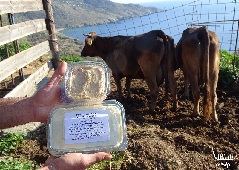 Ξαφνιάστηκα. Νέος αγρότης στην Άνδρο σε πρόγραμμα! Ακουγόταν ασυνήθιστο σ' ένα νησί που έχει εγκαταλείψει την αγροτική ζωή. Που έχει στρέψει εδώ και χρόνια την πλάτη στον πρωτογενή τομέα. Σε μια Άνδρο που σε ελάχιστες περιπτώσεις εκμεταλλεύτηκε τα κοινοτικά προγράμματα για νέους αγρότες. Σε αυτή την Άνδρο ο Μιχάλης Κακλαμάνης από το Μπατσί αποτελεί μια ελπιδοφόρα εξαίρεση. Κάτι που αποδείχτηκε στη συνέχεια της συζήτησης μας, αλλά και από την επίσκεψη μας στο μικρό κατηφορικό αγρόκτημα του στην Παλαιόπολη. Εκεί όπου έχει τις 9 από τις 10 γελάδες του. Την δέκατη την έχει στην Κατάκοιλο. Κι εκεί έχει και 100 γιδοπρόβατα μόνο για κρέας. Μέσα από την συνολική παραγωγή (και με την βοήθεια των επιδοτήσεων που υπάρχουν) προσπαθεί μέσα από την κτηνοτροφία και την τυροκομία να φτιάξει το μέλλον του στο νησί.