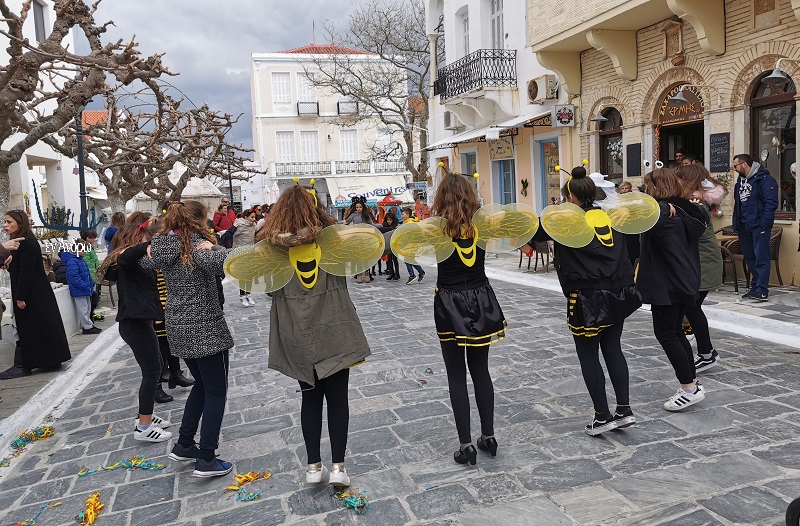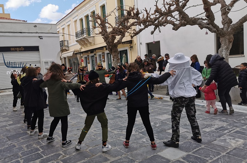 Παρόλα αυτά μασκαρεμένα χόρεψαν δίνοντας χαρμόσυνο τόνο σε μια δύσκολη εποχή. Τα παιδιά της Άνδρου ήταν εκεί, λοιπόν, να δώσουν κάτι από την ζωηράδα τους στην παραμονή της Αποκριάς του 2020. Εξαιρετικό μασκάρεμα η μελισσοκόμος...