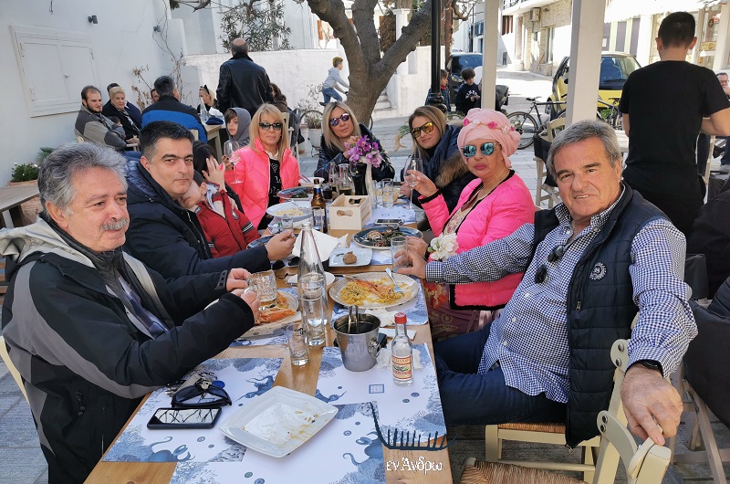 Και πάρα πολλές παρέες από Γαύριο και Μπατσί, αλλά και Χώρα. Το Κόρθι παρά την ματαίωση του καρναβαλιού είχε κόσμο από όλη την Άνδρο. Δεν έβρισκες τραπέζι να κάτσεις και χώρο να παρκάρεις. Τουλάχιστον στα κεντρικά του Όρμου...