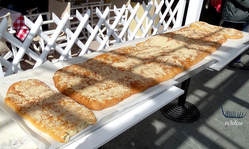 Και την λαγάνα γίγαντα - καταπληκτική γεύση είχαμε χρόνια να φάμε τέτοια λαγάνα - την προσέφερε ο Γιάννης από τον φούρνο του Τούντα. Που τον λένε Αρτάν κι είναι από την Αλβανία και κάνει εξαιρετική καριέρα ως φούρναρης στην Άνδρο. Εδώ σε μια χαρακτηριστική φωτογραφία. Μετά την λαγάνα γίγαντα, ο Αρτάν ο γίγαντας μέσα στις λαγάνες τις μέρας. Νάναι καλά να φτιάχνει πάντα τέτοιες λαγάνες...
