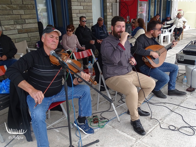 Και βέβαια δεν μπορούσαν να λείπουν οι μουσικοί που έπαιξαν από τραγούδια του Βορείου Αιγαίου (μέρες που είναι) μέχρι και της Άνδρου. Σην ομάδα συμμετείχαν τραγούδι ο Βαγγέλης Μαμάης από το Γαύριο, στο λαούτο ο Γιώργος Κατσίκης από το Γαύριο και στο βιολί ο Γιώργος Σαραβάνος από το Κόρθι.