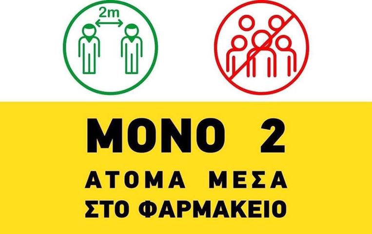 1. Στο Φαρμακείο μπαίνουν ΥΠΟΧΡΕΩΤΙΚΑ κάθε φορά ΜΟΝΟ ΔΥΟ ΑΤΟΜΑ.