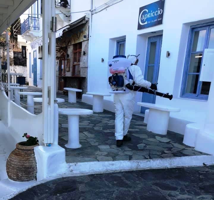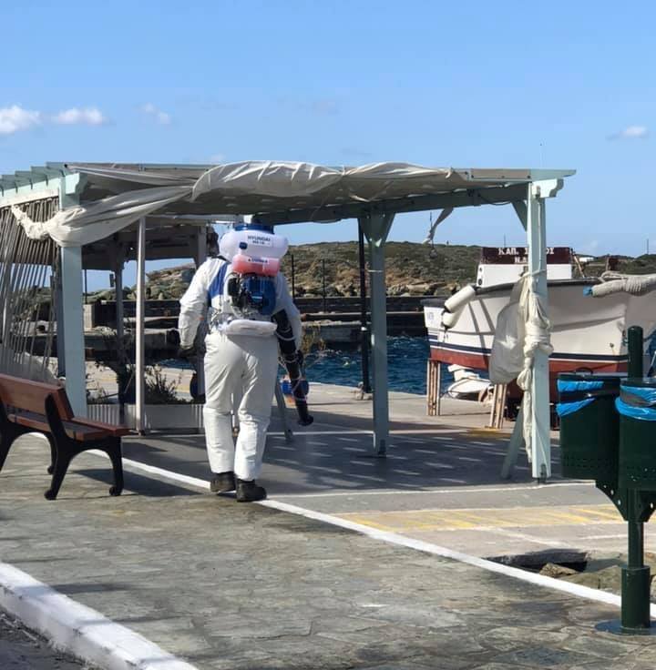Και στο Μπατσί όλοι οι κοινόχρηστοι χώροι - παρά τα κλειστά μαγαζιά - απολυμάνθηκαν. Από εκεί περνούν κι ενίοτε στέκονται οι λίγοι κάτοικοι που ξεμυτίζουν για τον φούρνο κλπ.