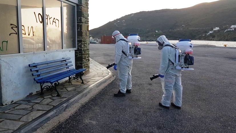 Ήταν να μην πάρουν φόρα τα συνεργεία απολύμανσης στην Άνδρο. Απολύμαναν και τα σημεία στις προβλήτες από όπου περνούν και στέκονται ή κάθονται οι λίγοι επιβάτες των ημερών. Αλλά και όλα τα σημεία που πιθανόν να κάθονται ή να περνούν οι κάτοικοι αυτές τις δύσκολες μέρες. Είναι ένα φωτορεπορτάζ του Εν Άνδρω στο Γαύριο και στο Μπατσί με την βοήθεια των κατά τόπους φίλων και συνεργατών μας...