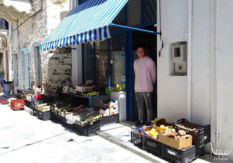Πιο πέρα ο μανάβης με είδη μαναβικής - κάποια από το Κόρθι. Στην πόρτα δίπλα στα οπωροκηπευτικά...