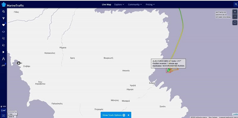Η διαδρομή του ALIKI FORCE προς την Άνδρο. Φωτογραφίες διαδρομής καπετάν-Γιάννης Μπουκουβάλας από Στενιές...