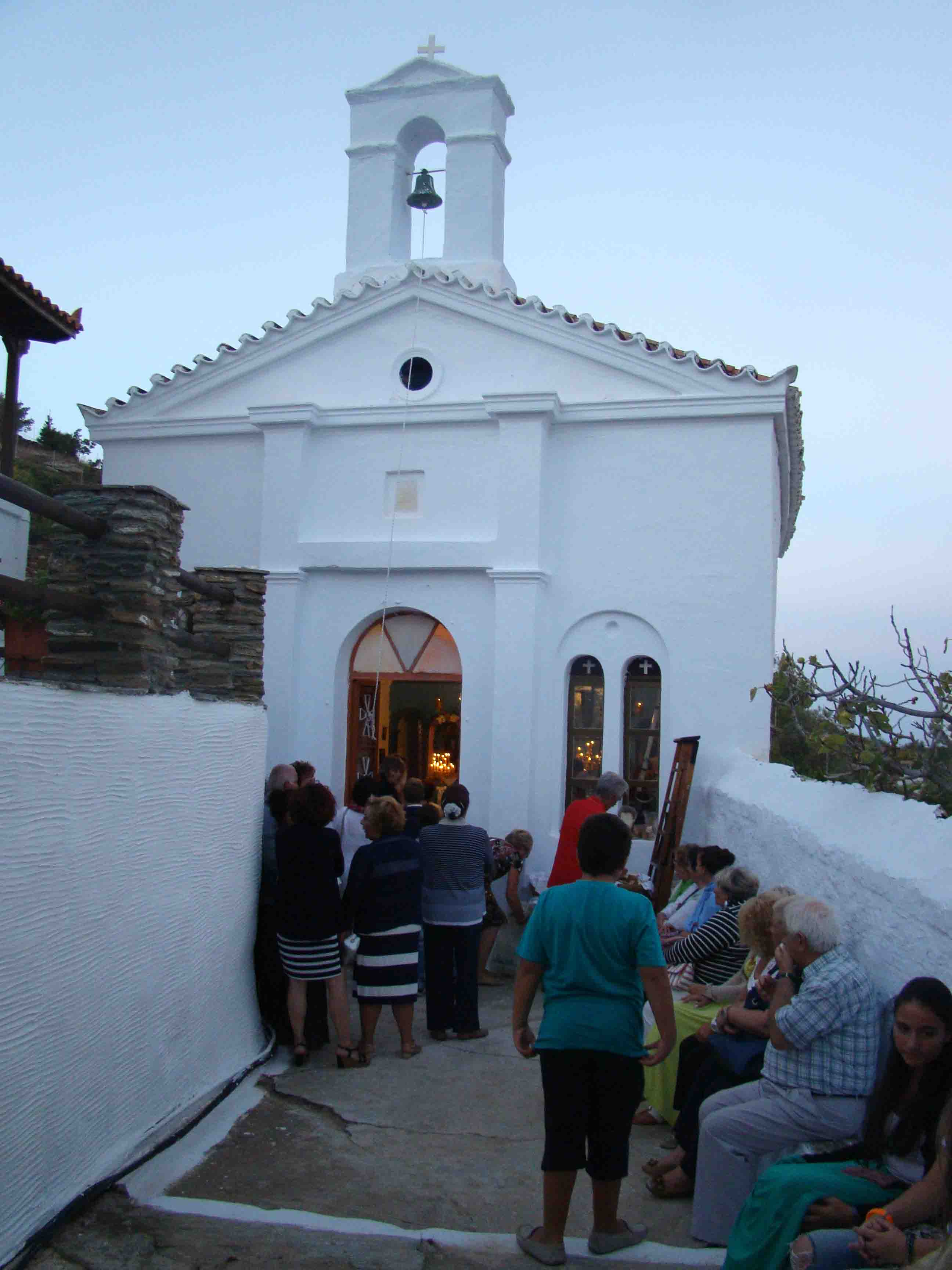 Θα ναφέρουμε εδώ δύο μικρά αντιπροσωπευτικά εξωκλήσια σε δύο από τις περιοχές του νησιού μας που σηματοδοτούν με τον τρόπο τους το τέλος της εποχής. Το πρώτο είναι του Αγίου Φανουρίου στην περιοχή του Κορθίου που γιορτάζει στις 27η Αυγούστου. Το δεύτερο είναι του Αγίου Συμεών στο Υψηλού που γιορτάζει την 1η Σεπτεμβρίου. Οι μόνιμοι κάτοικοι, αλλά και οι καλοκαιρινοί, προσέρχονται σε αυτά μιας και αποτελούν την τελευταία κοινή μάζωξη της θερινής περιόδου.
