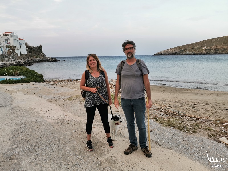 Στο τέλος της διαδρομής της στην Άρνη η Σόφι βρήκε ένα σκυλάκι. Ανήκε σε έναν υδραυλικό. Ερχόταν κάθε μέρα στο σπίτι που έμενε. Το υιοθέτησε. Του φόρεσε κι ένα εγγλέζικο φουλάρι! Και νάτος ο μικρός ανδριώτης που ντύθηκε Εγγλέζος και θα μεταναστεύσει προσεχώς στο Έσσεξ. Ρωτήσαμε την Σόφι πότε θα φύγει. Γέλασε κι είπε: "Το φθινόπωρο. Γιατί να πάω στην Αγγλία όταν όλοι θέλουν να έρθουν για καλοκαίρι στην Ελλάδα;" Τελικά μπορεί η Άνδρος να αποκλείστηκε από την υπόλοιπη Ελλάδα και τον κόσμο αυτή την περίοδο, όμως για κάποιους αυτός ο αποκλεισμός λειτούργησε απελευθερωτικά! Ο Ντέιβιτ και η Σόφι είναι δύο από αυτούς τους ευτυχείς, που η Άνδρος πρόσθεσε στη ζωή τους πολλά μέσα σε αυτή την παράξενη εποχή...