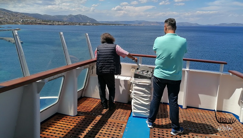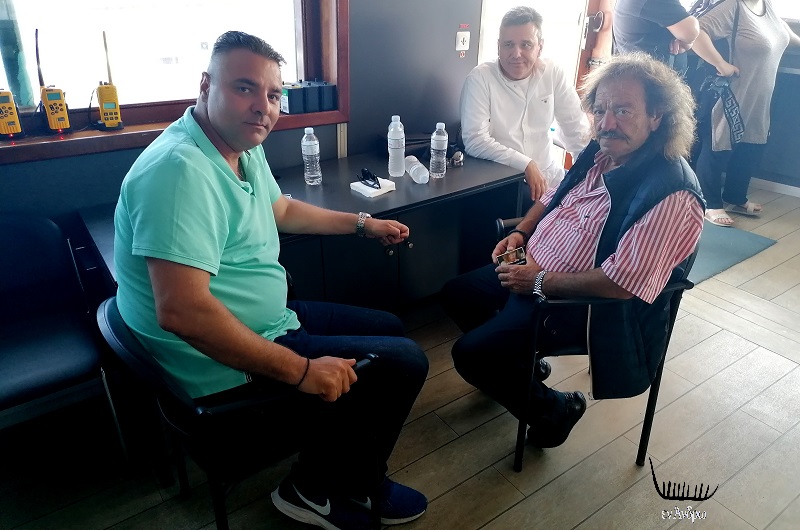 Ο καπετάν Γιώργος Δήμου που αναλαμβάνει το πλοίο από σήμερα (12/6/20). Δίπλα του ο καπετάν Τάσος.