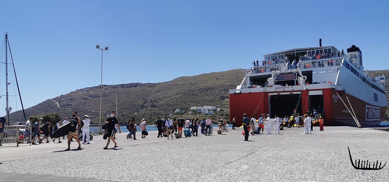 Όμως με το που άνοιξαν οι δρόμοι έφτασαν οι πρώτοι που αναχωρούσαν. Πρωτόκολλο όλα τα πλοία και όλα τα δρομολόγια χτες. Μόνο στο βραδινό έβρισκες θέση το πρωί. Φανταζόμαστε πως μετά το μεσημέρι ούτε στο βραδινό. Ο Θεολόγος έφτασε πρώτος σχεδόν γεμάτος. Γέμισε εντελώς και από Άνδρο και έφυγε πρωτόκολλο. (Βέβαια το πρωτόκολλο λόγω κορονοϊού είναι μειωμένο)...