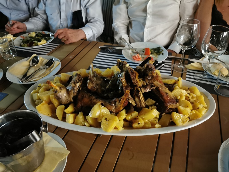 Αρνί στον φούρνο σερβιρισμένο ολόκληρο με πατάτες σε μια τεράστια πιατέλα στο Κόρθι! Εντυπωσιακή εικόνα για τους συνδαιτυμόνες της βραδιάς. Αλλά και για εμάς τους υπολοίπους. Είπαμε ο 15αύγουστος είναι το μικρό Πάσχα του καλοκαιριού...
