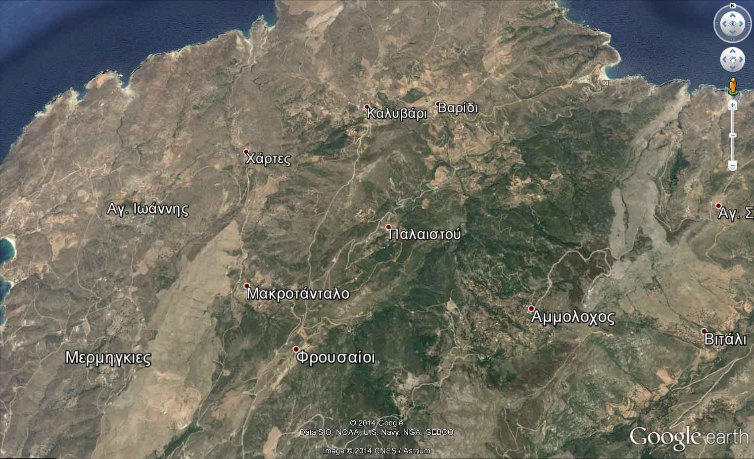 Η θέση της δεύτερης πυρκαγιάς που είναι στην ευρύτερη περιοχή της Αγιάς και της Κατάκοιλου και υπάρχει φόβος λόγω των ανέμων να πάει προς το Μπατσί