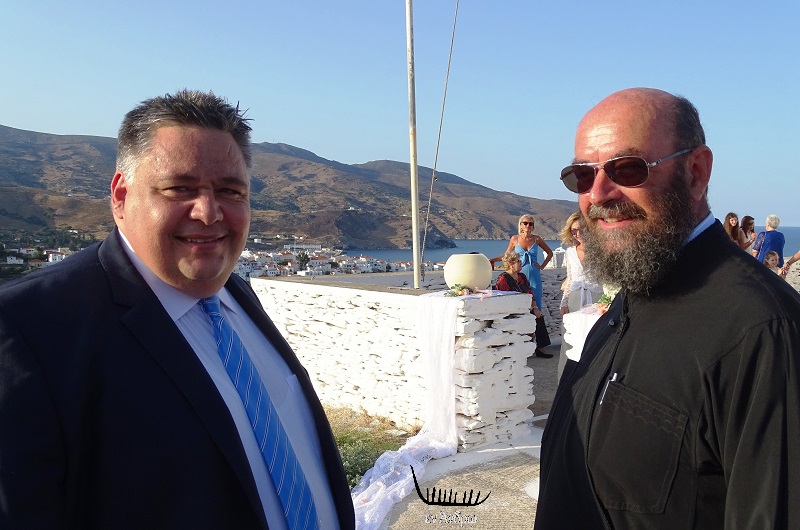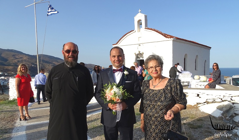 Τον είχαμε συνηθίσει με γραβάτα. Όμως για την περίσταση έβαλε παπιγιόν. Και βγήκε στο ξάγναντο περιμένοντας και γνέφοντας στην καλή του - που ως συνήθως σε αυτές τις περιπτώσεις αργούσε! Ο λόγος για τον έπαρχο Άνδρου και αντιπεριφερειάρχη Ενέργειας Κυκλάδων Δημήτρη Λάσκαρη που το Σάββατο 3 Οκτωβρίου 2020 παντρεύτηκε την Μαρία στο εξωκλήσι της Αγίας Μονής στη Χώρα. Μέχρι εδώ τα τυπικά. Πάμε στα μη τυπικά τώρα...