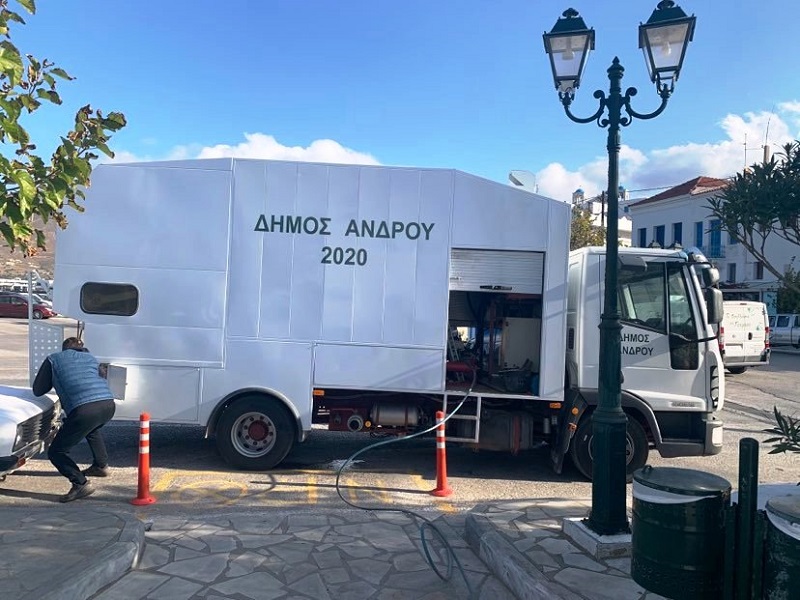 (γ) Ο Δήμος Άνδρου ενεργοποίησε το ειδικό αυτοκίνητο/πλυντήριο κάδων και απολύμανε όλους τους δημόσιους χώρους στο Γαύριο (παγκάκια, στέγαστρα κλπ) και θα ακολουθήσει και το Μπατσί.