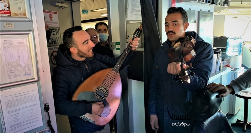 Πρωί-πρωί για μια τέτοια μέρα - που προέρχεται πάντα από ξενύχτι - βρέθηκαν στο λιμάνι ο Λιμενάρχης Άνδρου πλωτάρχης Θεόδωρος Κραψίτης, ο διοικητής λιμενικού τμήματος Γαυρίου ανθυποπλοίαρχος Λυτρίβης Θεόδωρος, η αντιδήμαρχος Γαυρίου Αθηνά Μακρή, η δημοτική σύμβουλος Τασία Μπιθικώτση και δύο μουσικοί από το Γαύριο: ο Γιώργος Ρέρρας και ο Γιώργος Κατσίκης...