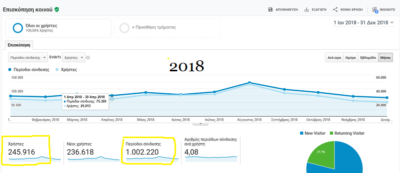 Παρακάτω παραθέτουμε τα στοιχεία από τους επίσημους πίνακες της Google Analytics: