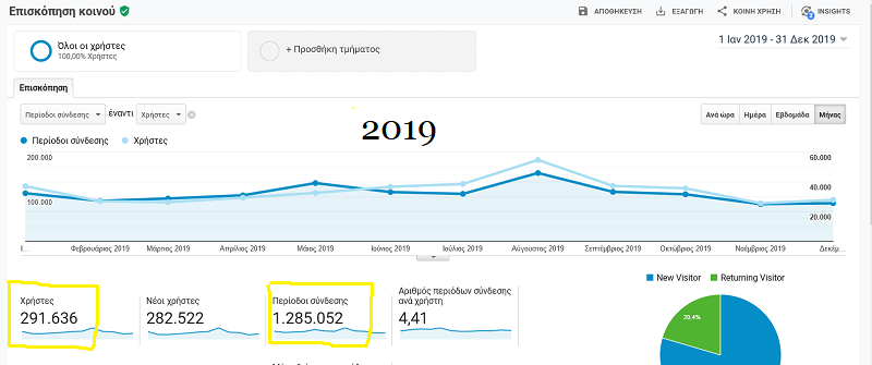 2019 - Επισκέψεις & Χρήστες ιστοσελίδας ΕΝ ΑΝΔΡΩ - Google Analytics