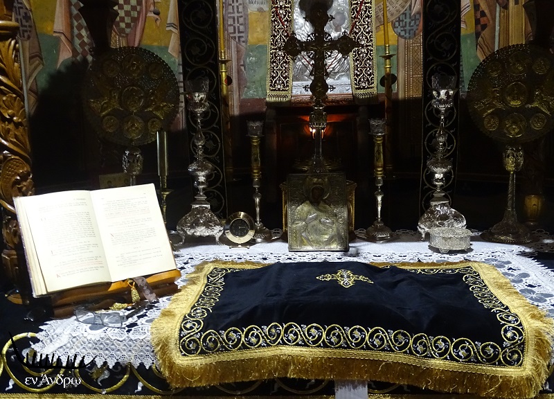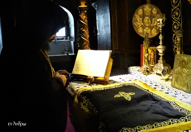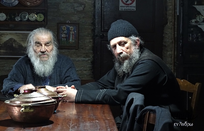 Βρήκαμε το μοναστήρι χωρίς κόσμο. Η πανδημία περιόρισε σημαντικά την προσέλευση χωρίς όμως αυτό να σημαίνει πως περιόρισε την αγάπη της κοινωνίας της Άνδρου - και ιδίως του Κορθίου αν και το μοναστήρι χωροταξικά ανήκει στην Χώρα. Όπως έλεγε ο Γέροντας Ευδόκιμος πρωί-πρωί της Καθαρής Δευτέρας έφτασαν 10 λαγάνες προσφορά κατοίκων και αρτοποιιών του Κορθίου στη Μονή! Μερικά πράγματα - όπως φαίνεται - ακολουθούν την δική τους διαδρομή. Και η διαδρομή από το Κόρθι προς το μοναστήρι φαίνεται μερικές φορές μικρότερη από την Χώρα! Το γράφουμε αυτό χωρίς να ξεχνάμε πως μερικοί από τους πιο σταθερούς και μεγάλους ευεργέτες της Μονής είναι ορισμένοι εφοπλιστές της Χώρας - όπως ο αείμνηστος Αλέκος Γουλανδρής - που συνέβαλε σημαντικά στην ανακαίνιση του επί πολλά χρόνια.