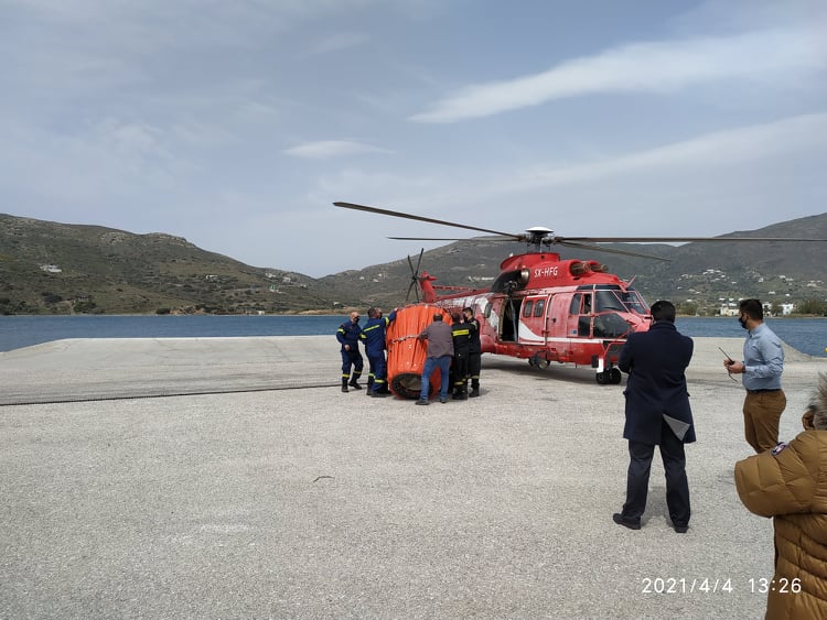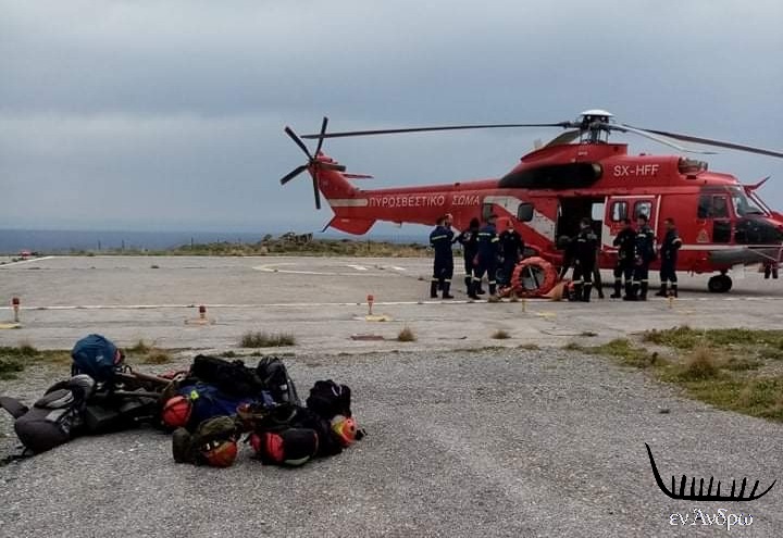 Το ελικόπτερο και οι άνδρες της Πυροσβεστικης στο ελικοδρόμιο της Χώρας.