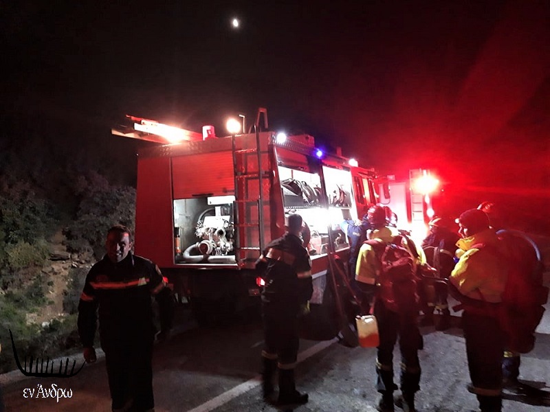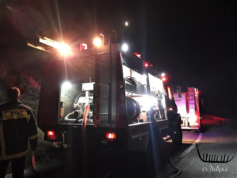 Τέλος ο Δήμος Άνδρου στέλνει ενισχύσεις στο μέτωπο της φωτιάς τρεις ακόμα υδροφόρες. Μια από το Κόρθι, μια που είχε "ξεχαστεί" επί χρόνια και επισκευάστηκε πρόσφατα. Και μια ιδιωτική που την επιστράτευσε ο δήμαρχος.