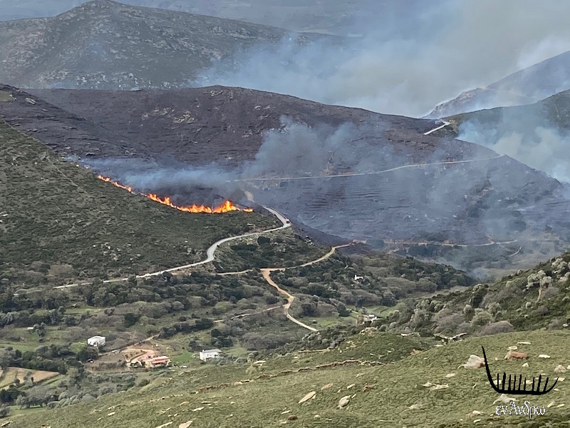 Μια από τις μεγαλύτερες κινητοποιήσεις των δυνάμεων πυρόσβεσης της Άνδρου και μια από τις μεγαλύτερες κινητοποιήσεις του κρατικού μηχανισμού έζησε το νησί την Κυριακή 4/4/21. Για την ώρα ας μείνουμε στο ότι από μια τέτοια μεγάλη φωτιά δεν είχαμε απώλειες. Και πως ο υφυπουργός Πολιτικής Προστασίας Ν. Χαρδαλιάς συνεργάστηκε στενά από την πρώτη στιγμή με τον δήμαρχο Άνδρου, την Πολιτική Προστασία και την πυροσβεστική του νησιού στην κατάσβεση των πύρινων μετώπων. Οι εναέριες και οι επίγειες δυνάμεις που έστειλε ήρθαν στην ώρα τους και έδρασαν καίρια και αποτελεσματικά σώζοντας περιουσίες και ζωές.