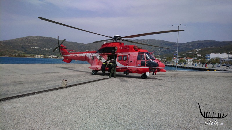 Το ελικόπτερο προσγειώνεται στο ελικοδρόμιο της Χώρας.