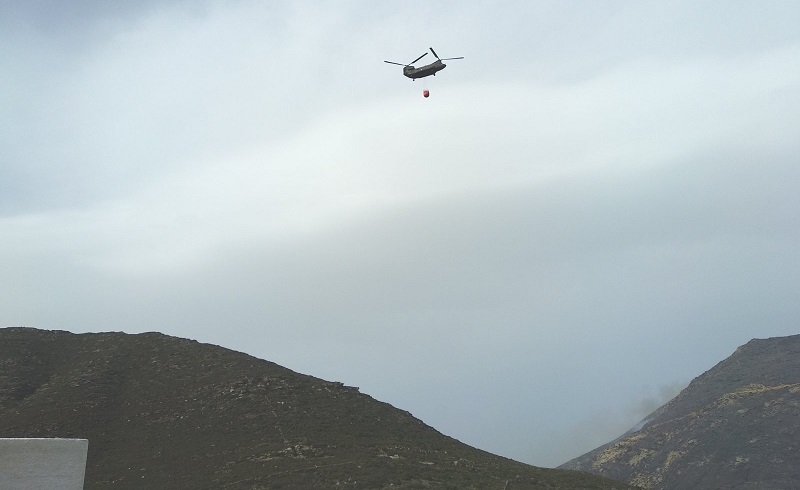 Τα ελικόπτερα συνεχίζουν αδιάκοπα ρίψεις, ενώ το αεροπλάνο έφυγε.