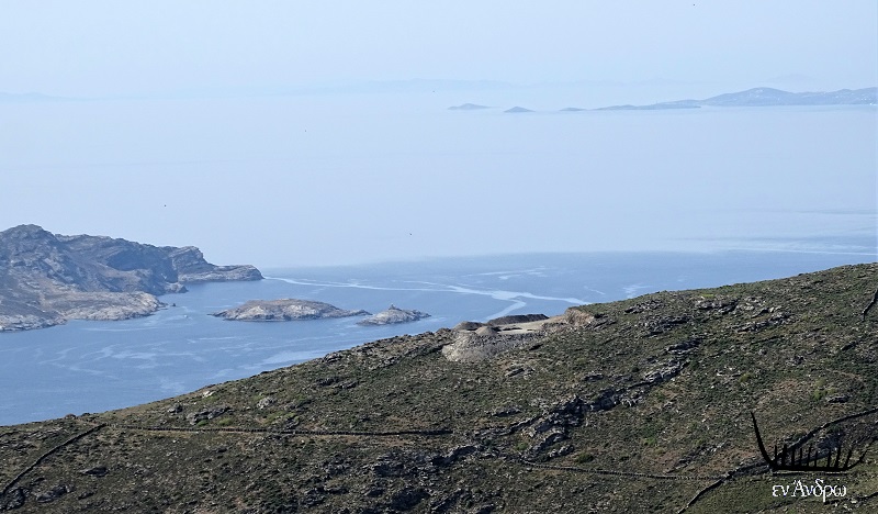 Ανηφορίζοντας το μάτι χάνεται στο πιο εντυπωσιακό Στενό των Κυκλάδων. Άνδρος και Τήνος πλησιάζουν στα 1600 μέτρα. Δύο μικρά νησάκια γεφυρώνουν και να ομορφαίνουν το πέρασμα. Στο βάθος η Γυάρος σαν οπτασία στη θάλασσα. Και μπροστά το πέτρινο Φραγκάκι. Το άγνωστο Φραγκάκι, που μέσα σε ένα χρόνο χάρη στις 5 ανεμογεννήτριες και στο ζευγάρι των σπιζαετών της περιοχής έγινε πασίγνωστο στην Άνδρο και πάρε πέρα...