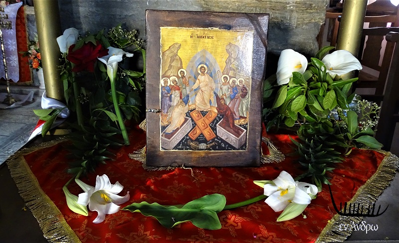Λίγος ο κόσμος. Οι πολλοί είναι στις δουλειές τους. Αρκετοί έφυγαν για Αθήνα. Και κάποιοι πήγαν στο μεγαλύτερο μοναστήρι της Ζωοδόχου Πηγής, στην Αγία, πάνω από το Μπατσί, που κι αυτό γιορτάζει σήμερα. Έμειναν οι λίγοι μόνιμοι κάτοικοι της περιοχής. Αυτοί που φροντίζουν το μοναστήρι. Και μερικοί επισκέπτες από πιο μακριά όπως εμείς...