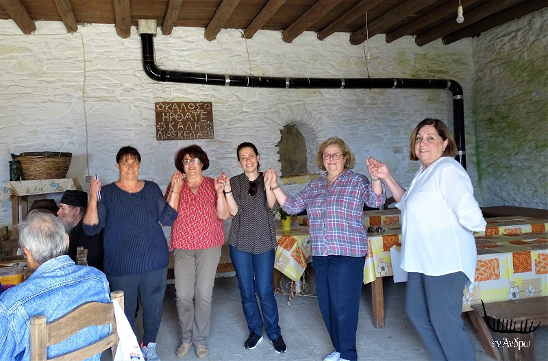 Παρά τους λίγους προσελθόντες υπήρξε από τις γυναίκες ο σχετικός χορός. Ζήτησαν μια φωτογραφία και ο μικρός φίλος της παρέας την έβγαλε. Την δημοσιεύουμε με την υποσημείωση να θυμούνται ορισμένοι τις εκατοντάδες φορές που εδώ και 5 χρόνια ανελλιπώς το "Εν Άνδρω" έχει προβάλει σχεδόν όλες τις εκδηλώσεις και γιορτές, τους χειμώνες και τα καλοκαίρια στο Κόρθι. Αλλά και τις σπουδαίες φυσικές ομορφιές του Κορθίου. Αυτά πριν αρχίσουν μερικοί, που ήταν και στο πανηγύρι, να μεμψιμοιρούν κατά της ιστοσελίδας μας. Να τους πούμε δε πως εμείς τους βάλαμε στο πρόγραμμα. Και πήγαμε στα Φλετρά., Ώστε να "ταξιδέψουμε" το πανηγύρι της αγροτικής Άνδρου και των φίλων ξωμάχων της περιοχής σε όλη την Άνδρο, αλλά και παραπέρα. Κι ας αναλογιστούν όλοι πως ένας τόσο μικρός τόπος δεν μπορεί να πάει μπροστά με μεμψιμοιρούντες... Αυτά. Χρόνια πολλά. Και του χρόνου...