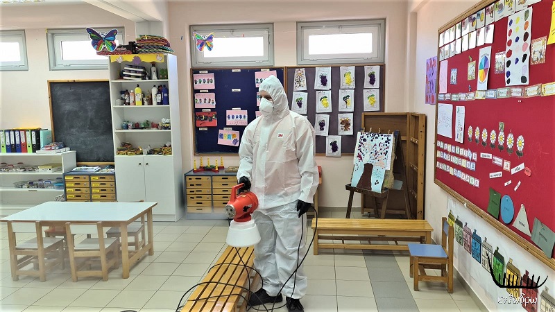 Ολοκληρώθηκαν οι απολυμάνσεις στα κλειστά σχολεία του Κορθίου σήμερα 17/5. Το συνεργείο ξεκινά τώρα απολυμάνσεις στο Γαύριο.