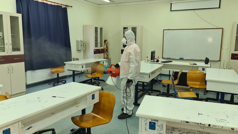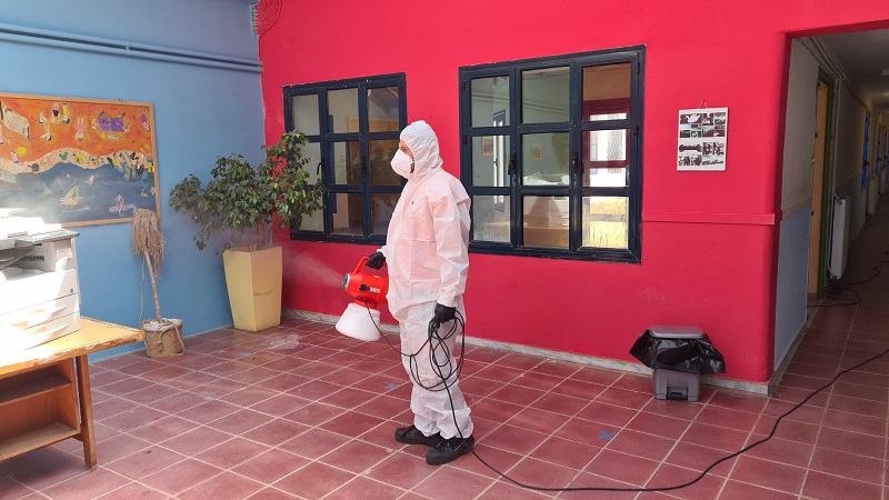Από τις σημερινές απολυμάνσεις του Δήμου Άνδρου στα σχολεία του Γαυρίου από την εταιρεία Λ. Ζαΐρη