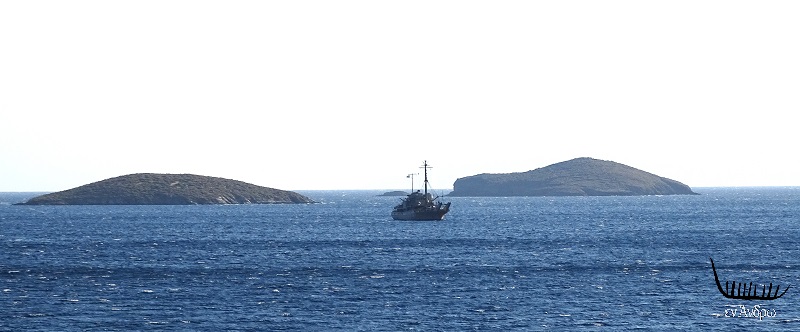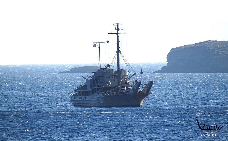 Το μελτέμι φέρνει στα δυτικά του νησιού για βραδινό αγκυροβόλιο και το παράξενο πολεμικό πλοίο. Είναι το πολεμικό Φ/Θ ΘΕΤΙΣ με πλευρικό αριθμό Α - 307. Είναι κατασκευασμένο για εργασίες τοποθέτησης μεταλλικών φραγμάτων και χρησιμοποιείται μετά για τον παροπλισμό των φραγμάτων για συντήρηση, πόντιση, και ανέλκυση ναυδέτων με τα παρελκόμενα τους. Την ώρα της φωτογραφίας είχε αγκυροβολήσει ανοικτά στο Κυπρί.