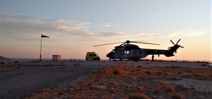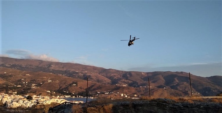 Ελικόπτερο της Αεροπορίας Στρατού έφτασε στις 5:30 και κατέβηκε γιατρός με νοσοκόμους και πήγαν στο Κέντρο Υγείας όπου διασωλήνωσαν την ασθενή. Το ελικόπτερο γύρω στις 7.30 απογειώθηκε με κατεύθυνση την Αθήνα.