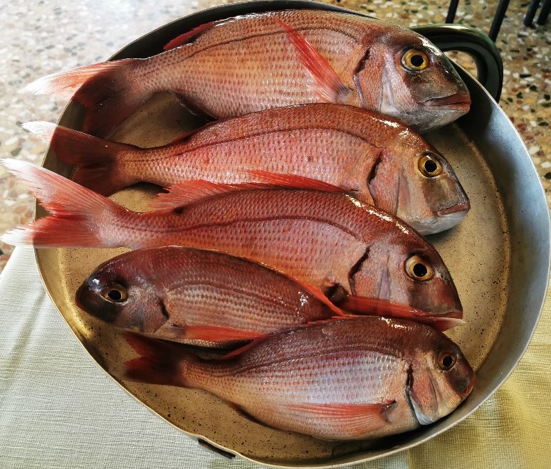 Έκτοτε κάθε φορά που ακούω για φαγκρί η σκέψη μου πάει στην πρώτη γνωριμία μου μαζί του. Το ίδιο συνέβη και με τα φαγκρόπουλα του Ζώταλη. Ο Βαγγέλης είδε που γέλαγα και τα έφερε σε ένα ταψί να τα δω. "Σαν λουλούδια είναι" είπε δείχνοντας τα. Τα φωτογράφισα. Και μετά του ζήτησα να τα φωτογραφήσω και με φόντο την Χώρα και την θάλασσα που τα ψάρεψε ο Γιάννης.