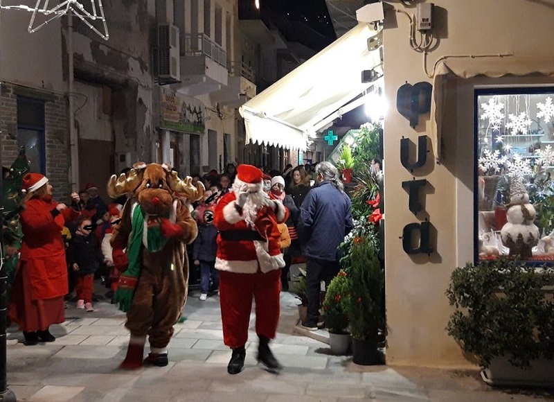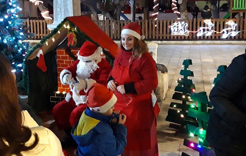 Στην πλατεία ο Αη Βασίλης έβγαλε φωτογραφίες με τα παιδιά και οι σύλλογοι πρόσφεραν κεράσματα και πουλούσαν αναμνηστικά για ενίσχυση τους.