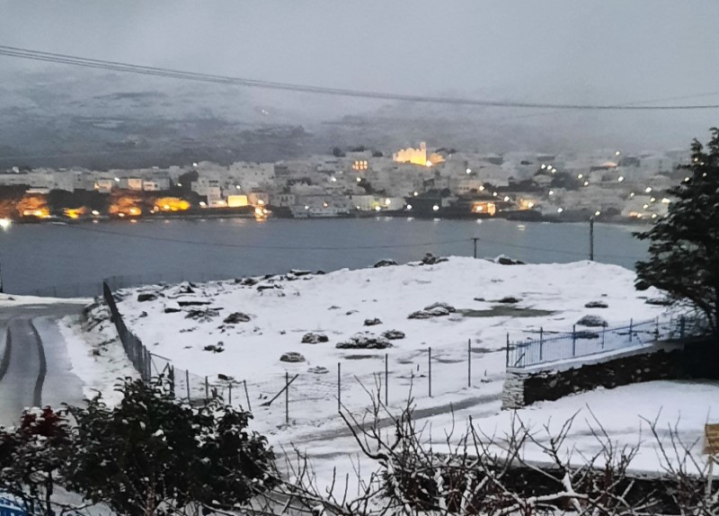 Χιόνισε μέχρι την θάλασσα. Έτσι ξύπνησε η Άνδρος στις 8 το πρωί όταν μπόρεσαν και είδαν το νησί μέσα από ένα διάλλειμα του χιονιού οι κάτοικοι της Χώρας την πόλη και την περιοχή του Νειμποριού. Από το πρωί είναι στους δρόμους η πυροσβεστική και κάνει έλεγχο. Οι δρόμοι έχουν αποκλειστεί στα Απροβάτου (20-25 πόντους ύψος) και διανοίγονται από μηχάνημα που ξεκίνησε από το Γαύριο προς Σταυροπέδα ακολουθούμενο από όχημα του ΣΕΔΑ με τον δήμαρχο μέσα.