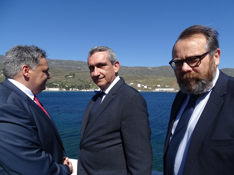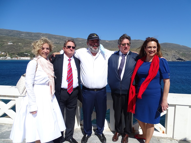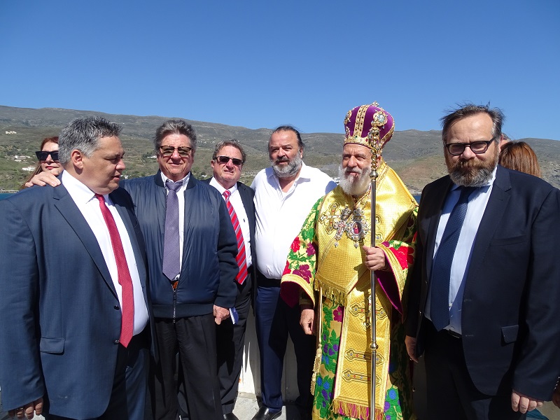 Να σημειώσουμε την παρουσία στην γιορτή εκτός των δύο ανδριωτών ακτοπλόων, του Δημήτρη και του Γιώργου Στεφάνου και του ακτοπλόου Μάριου Ηλιόπουλου, ιδιοκτήτη του Super Star, που με τον ερχομό του έδωσε τον τόνο στην ηλιόλουστη και γιορτινή μέρα. Στην φωτογραφία οι τρεις πλοιοκτήτες με τον μητροπολίτη Δωρόθεο ΙΙ, τον Γενικό γραμματέα του υπουργείου Ναυτιλίας και τον δήμαρχο Άνδρου...