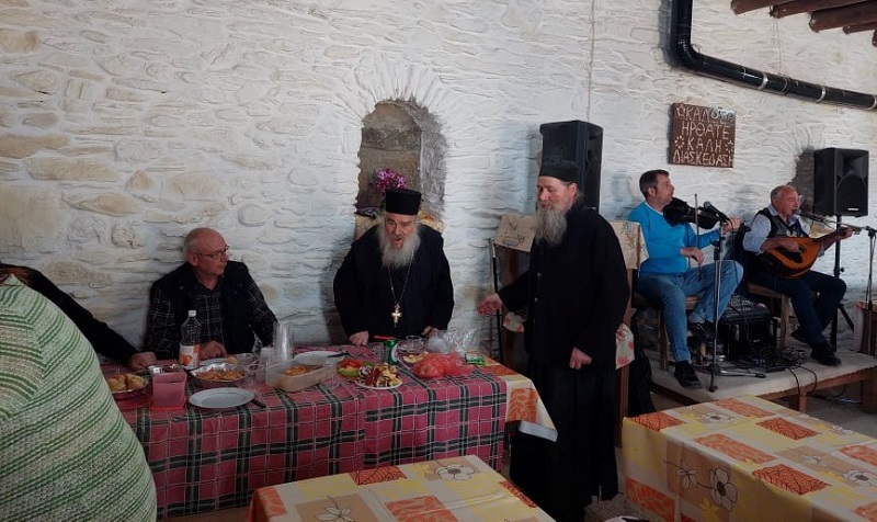 Και μετά όλοι μπήκαν στο καθιστικό του μοναστηριού όπου ήταν πλούσια τα ελέη του θεού. Προσφέρθηκαν από τους φιλόξενους Κορθιανούς εδέσματα και υπήρχε και μουσική. Ένα μικρό πανηγύρι όπως σχεδόν κάθε χρόνο. Και βέβαια σύμπασα η αδελφότητα της Μονής Παναχράντου στην επίβλεψη και κυριαρχία της οποίας ανήκει το παλιό μοναστήρι...