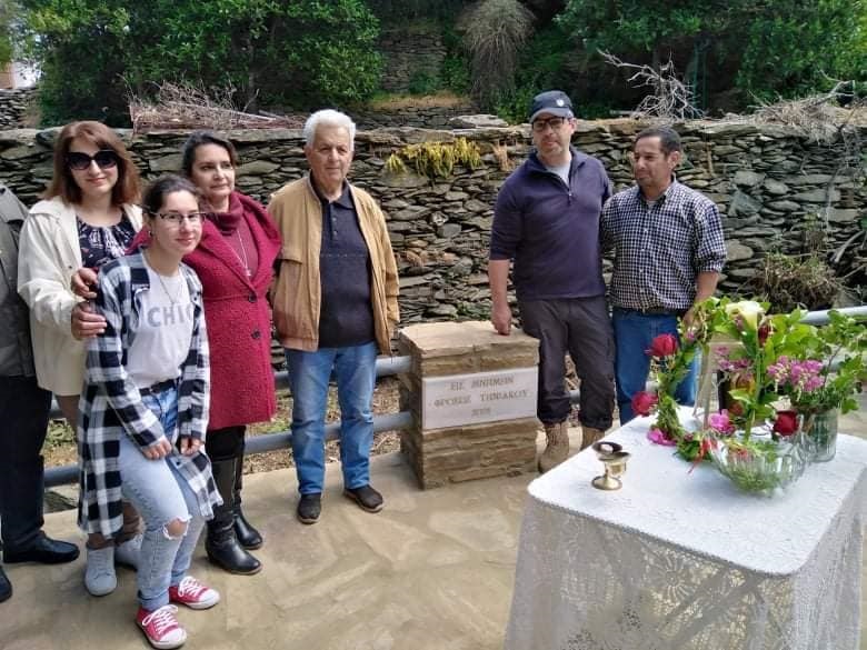 Ο Ανδρέας Τηνιακός, η οικογένεια του και φίλοι του μπροστά στην αφιερωματική πλάκα της μικρής πλατείας...