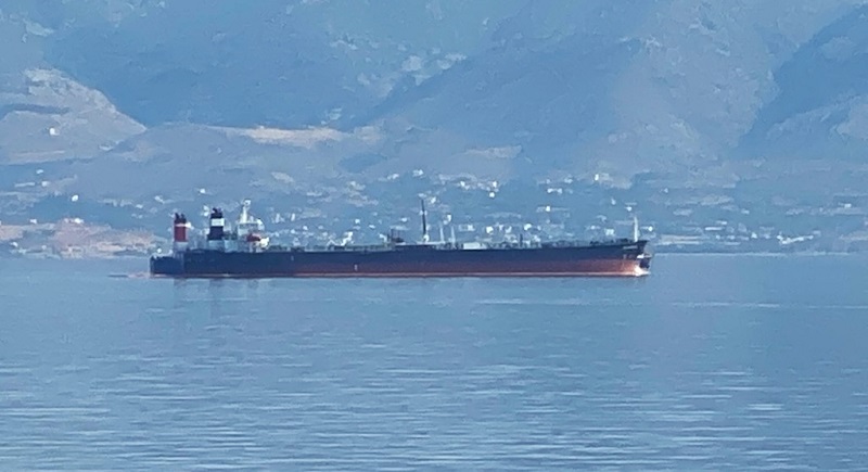 Πρωινό Τετάρτης 25/5. Στον Κάβο Ντόρο το Andros Fast Ferries συναντά το πλωτό του λιμενικού που ταξιδεύει να αναλάβει βάρδια στο ρωσικό πετρελαιοφόρο που δέσμευσε η Ελλάδα στον Κάβο Ντόρο και βρίσκεται ενάμιση μήνα αγκυροβολημένο στα ανοικτά της Καρύστου ως εφαρμογή των κυρώσεων της ΕΕ κατά της Ρωσίας. Ο καπετάν Γιώργος Κολίτσας μας το δείχνει και τραβάμε μια φωτογραφία καθώς το σκάφος ταξιδεύει προς Εύβοια όπου έχει ήδη ξεκινήσει η μεταφόρτωση του πετρελαίου από το ρωσικό τάνκερ...