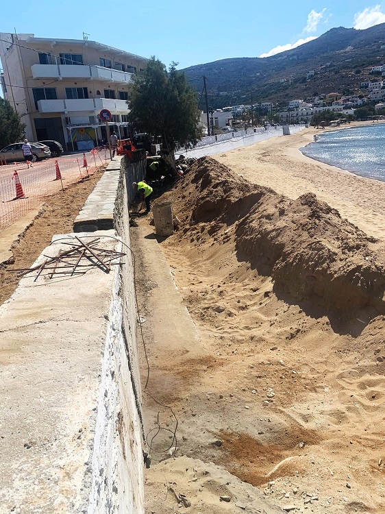 Η παλαιά κατασκευή με παλαιότερες προδιαγραφές δεν άντεξε σε δύο σημεία μέχρι σήμερα το χειμέριο κύμα του νοτιά. Με την σημερινή ολοκλήρωση της ανακατασκευής σταθεροποιήθηκε σχεδόν το σύνολο του παραλιακού δρόμου στο Μπατσί έναντι του νοτιά. Οι επόμενες εργολαβίες της μελέτης αφορούν έργα σε Κόρθι, Γαύριο, Χώρα. Σύμφωνα με τους επιβλέποντες των έργων αναμένεται να προχωρήσουν και να ολοκληρωθούν μέχρι το τέλος του έτους.