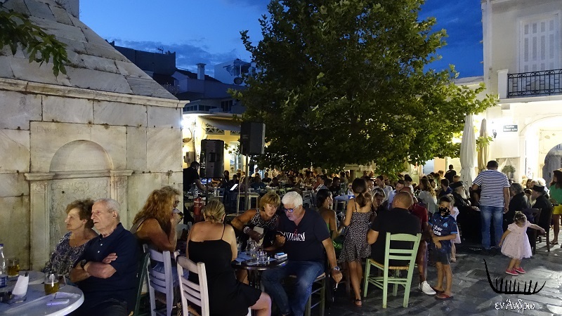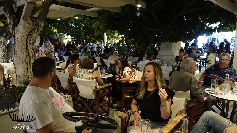 Ενώ οι εκατοντάδες κάτω από το νέο μεγάλο πλάτανο άκουγαν μουσική απολαμβάνοντας τους μεζέδες των δύο καταστημάτων...