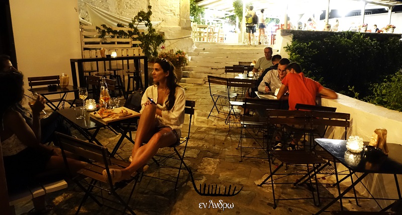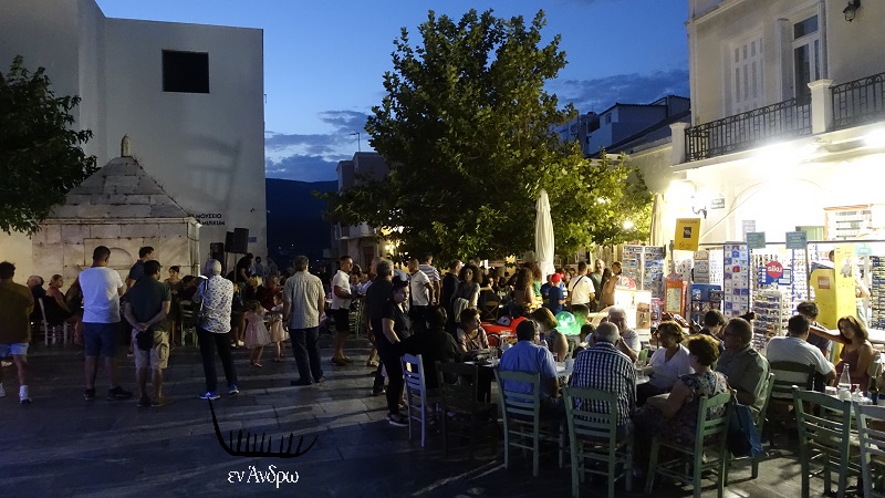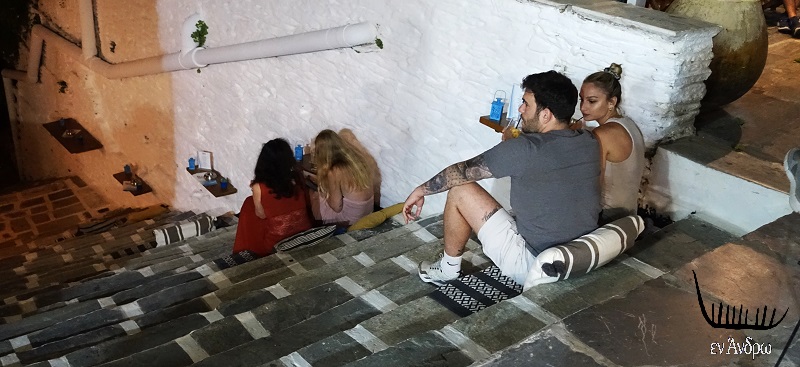 Τέλος τα δύο μπαρ στα σκαλάκια της πλατείας ζούσαν στον δικό τους κόσμο κεντροαπόκεντρα και με κόσμο περισσότερο νεανικό και επισκέπτες του νησιού. Εδώ μια σκηνή από το ΝΕΩΝ..
